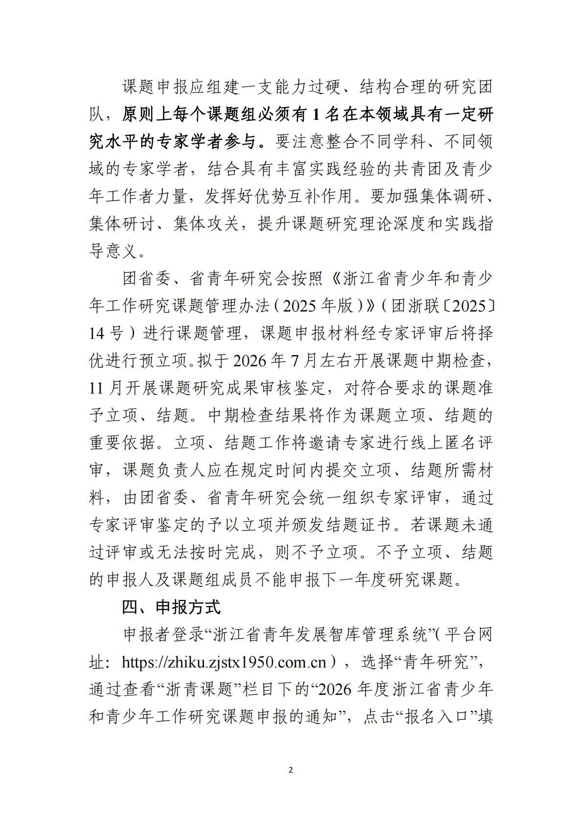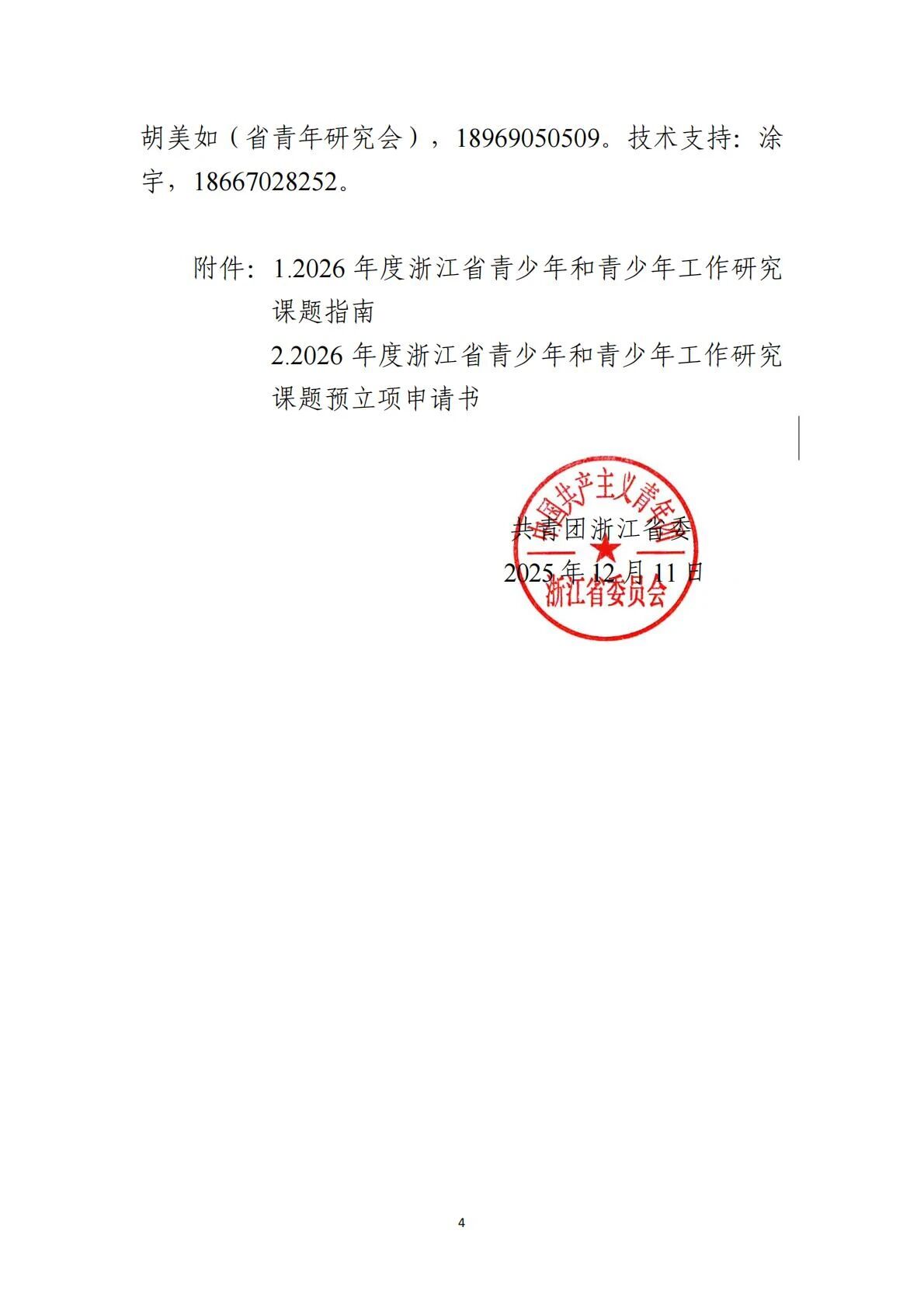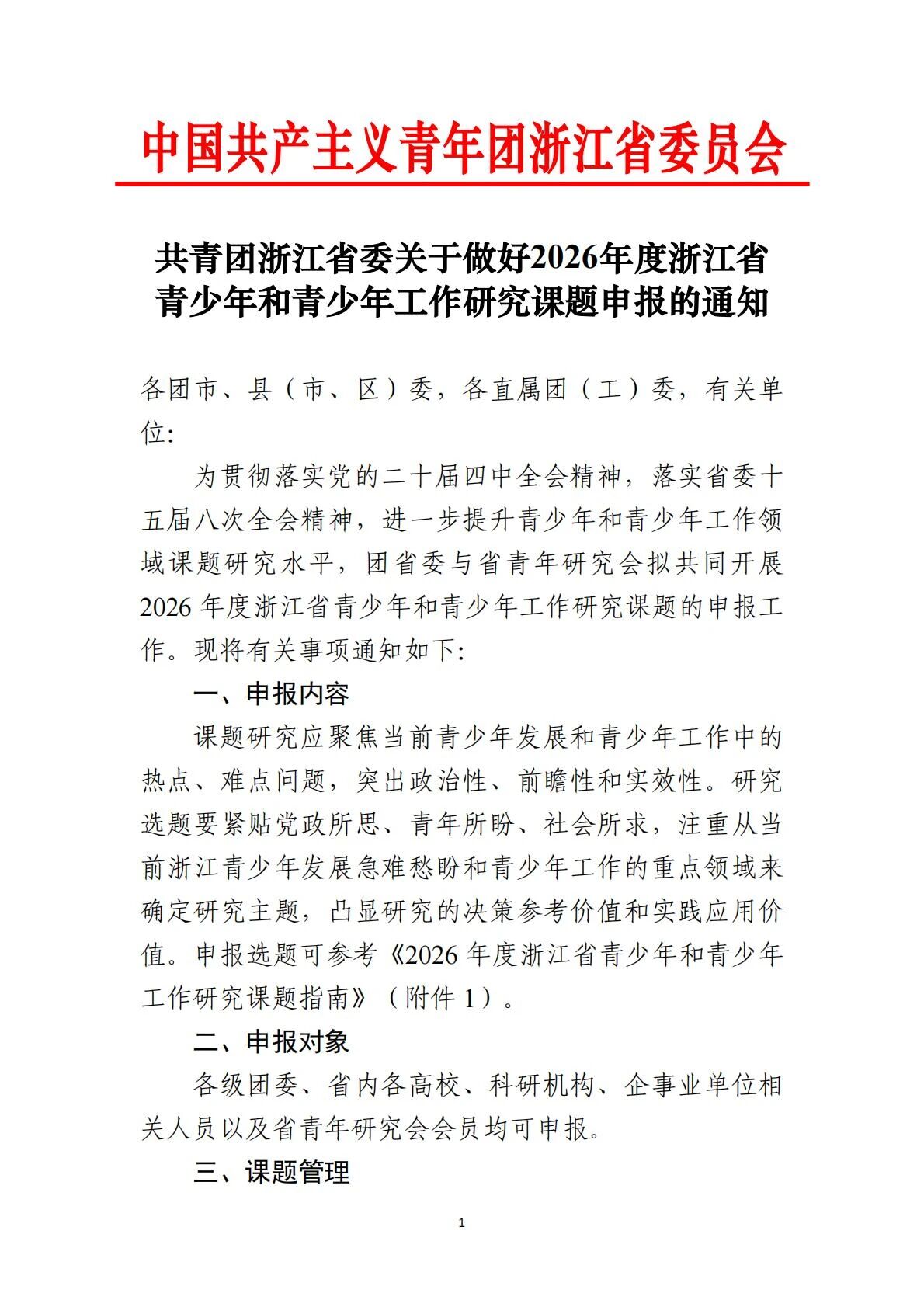 关于做好2026年度浙江省青少年和青少年工作研究课题申报的通知