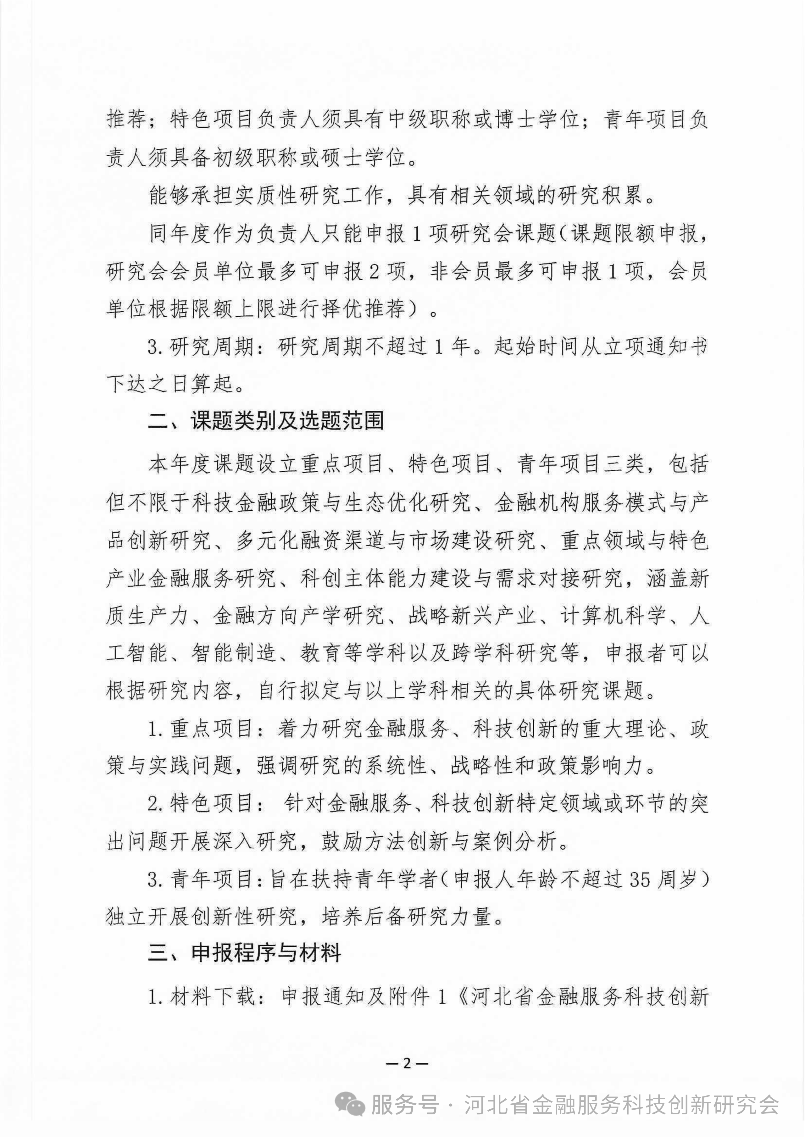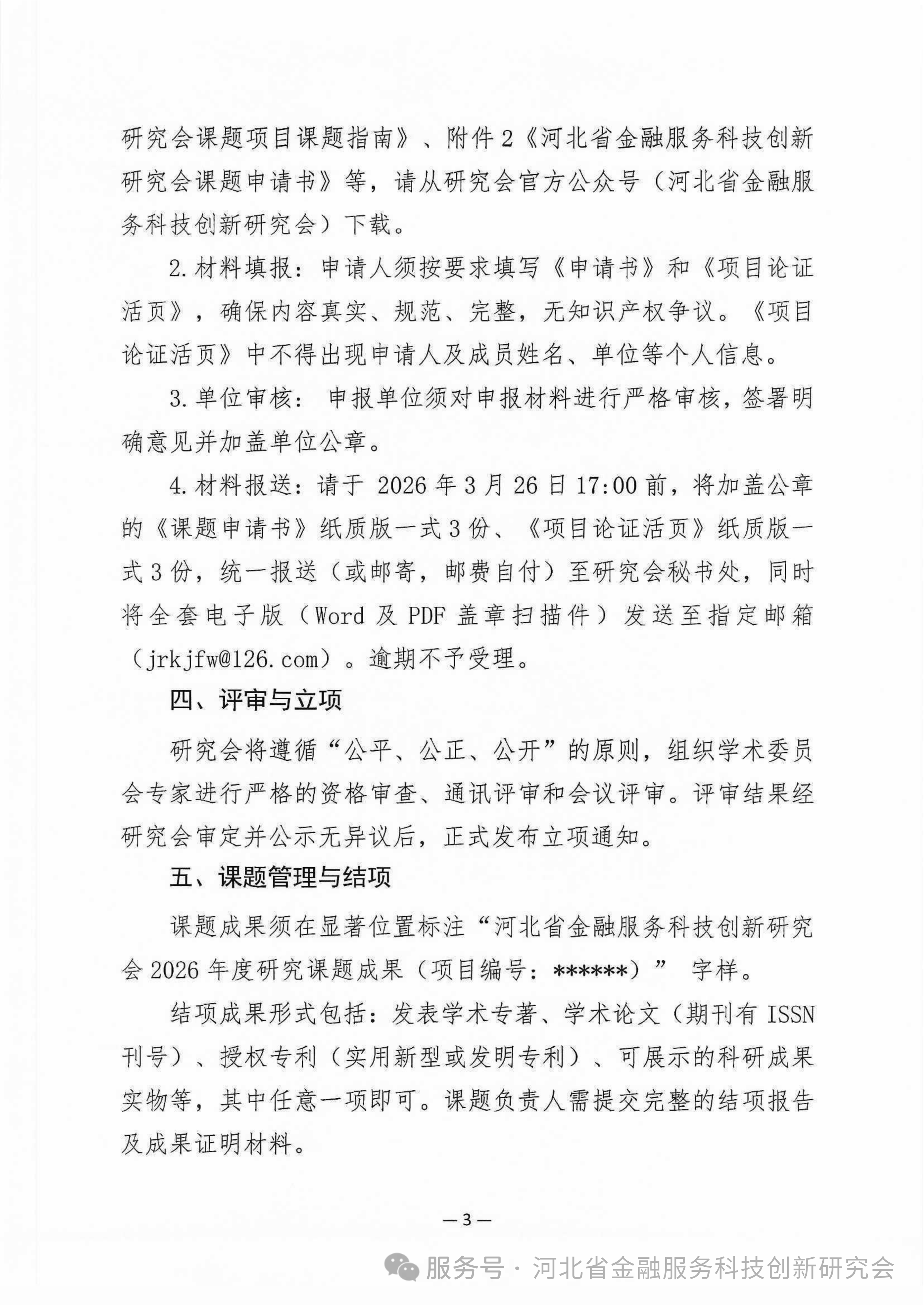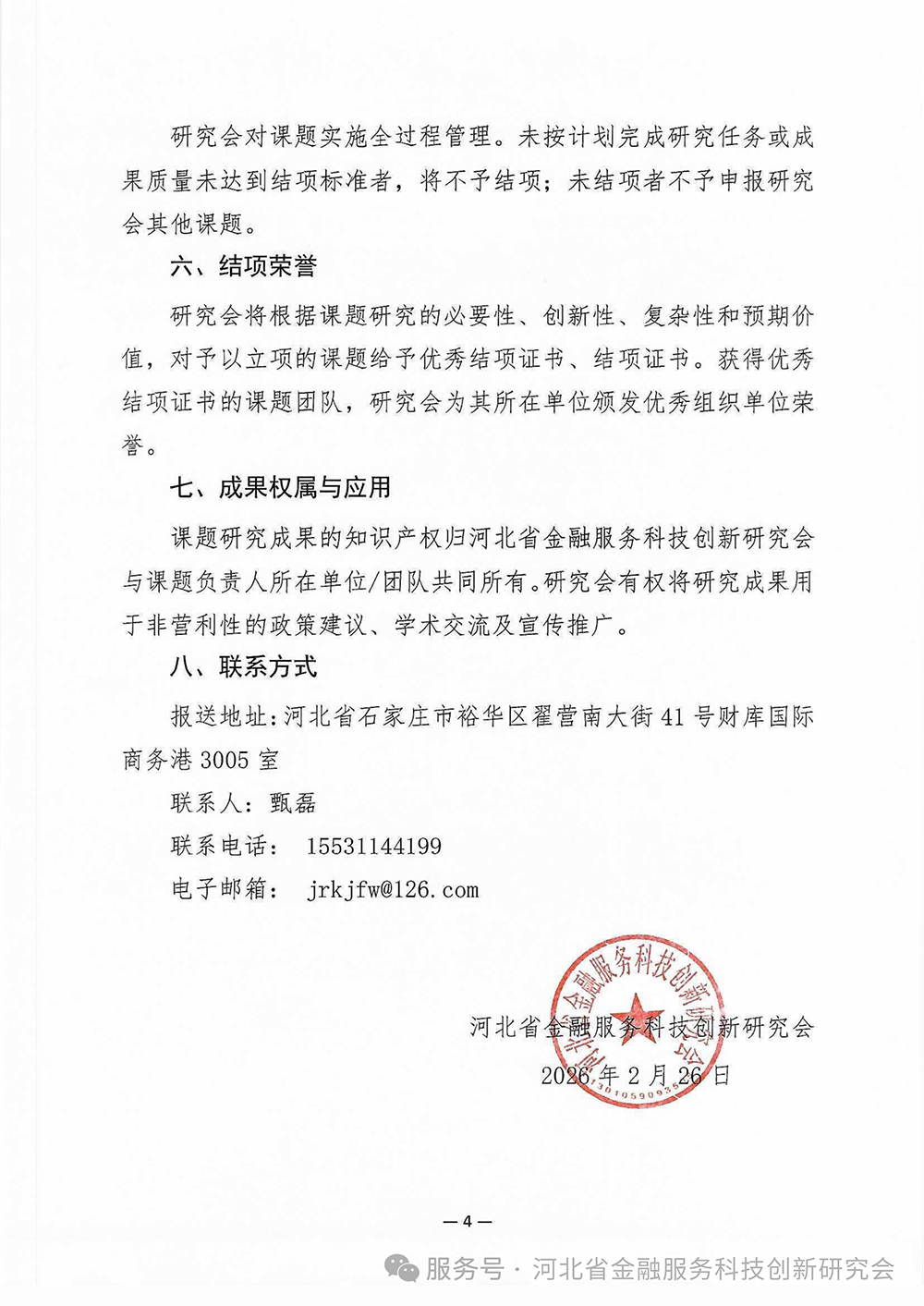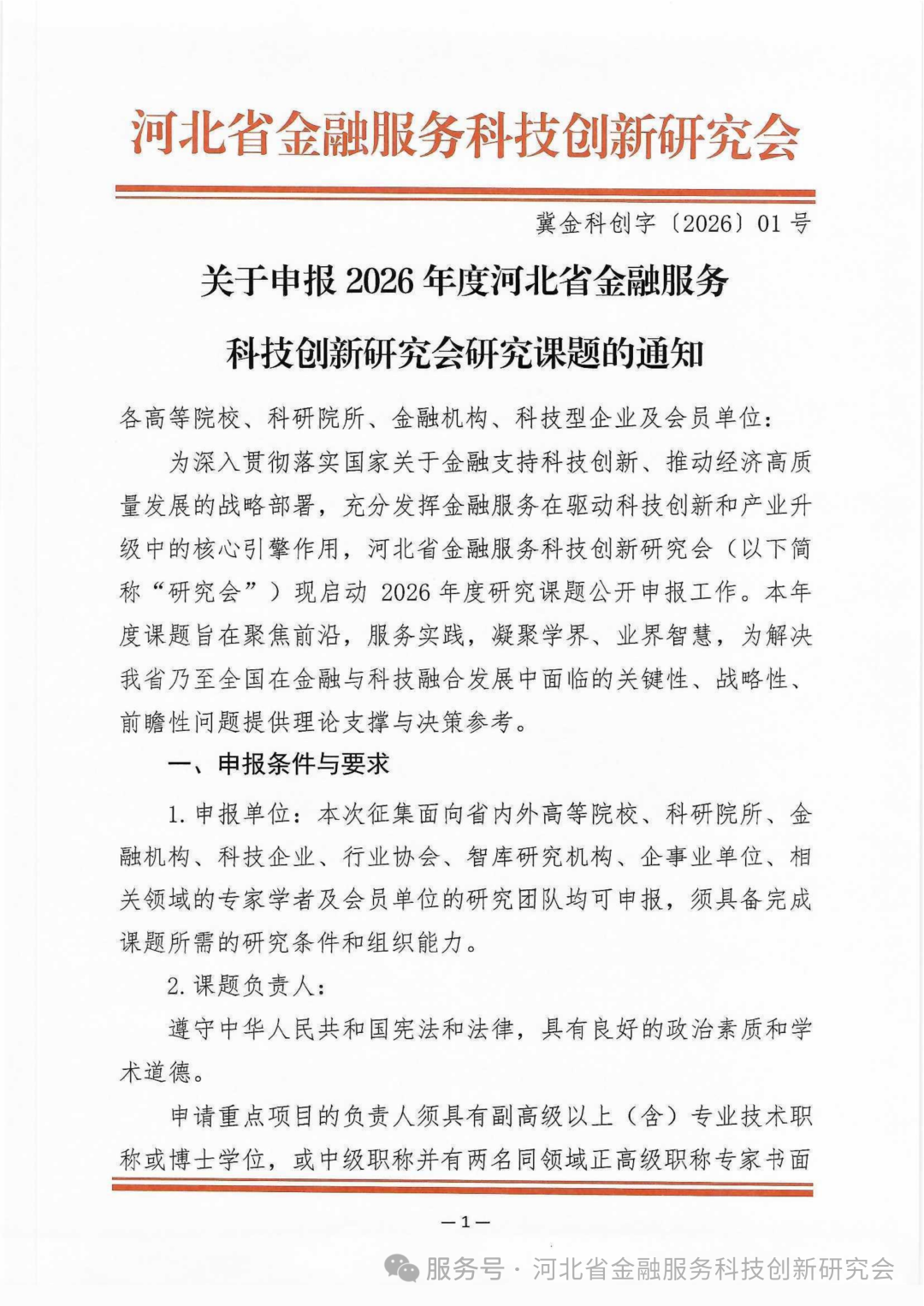 面向全国 | 关于申报2026年度河北省金融服务科技创新研究会研究课题的通知