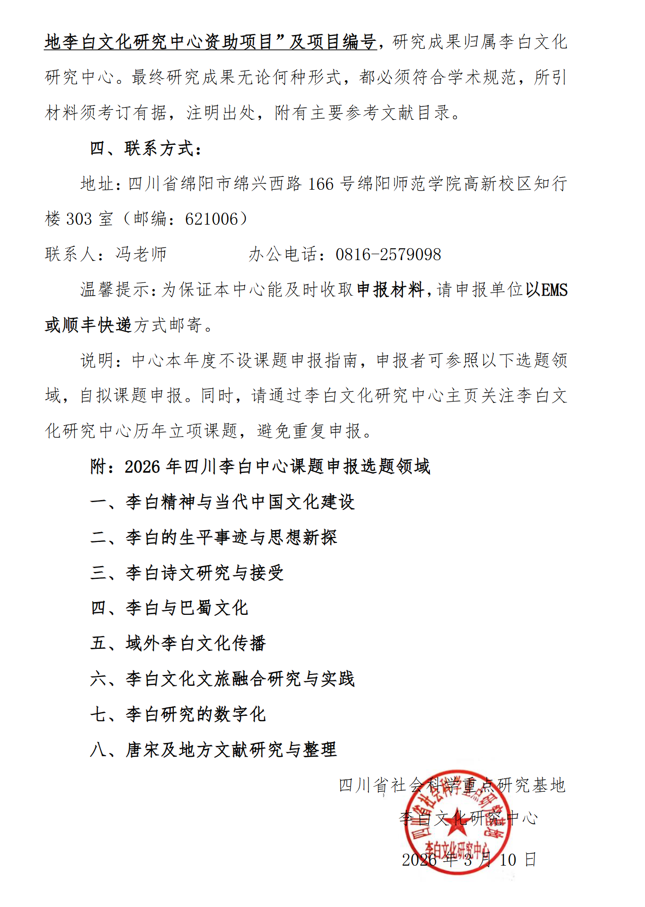 面向全国 | 李白文化研究中心2026年度课题申报公告