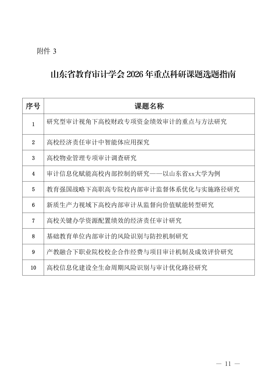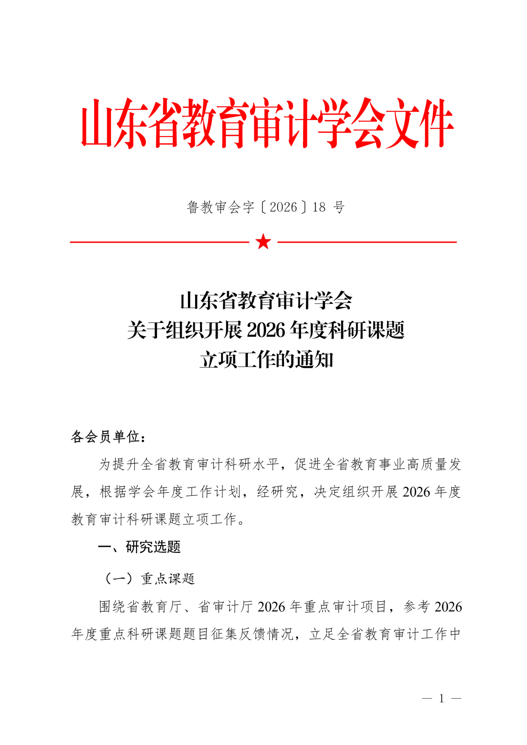 山东省教育审计学会关于组织开展 2026 年度科研课题立项工作的通知