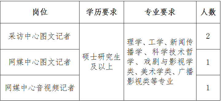 因事业发展需要,报社现面向国内外高校公开招聘2026年应届毕业生。