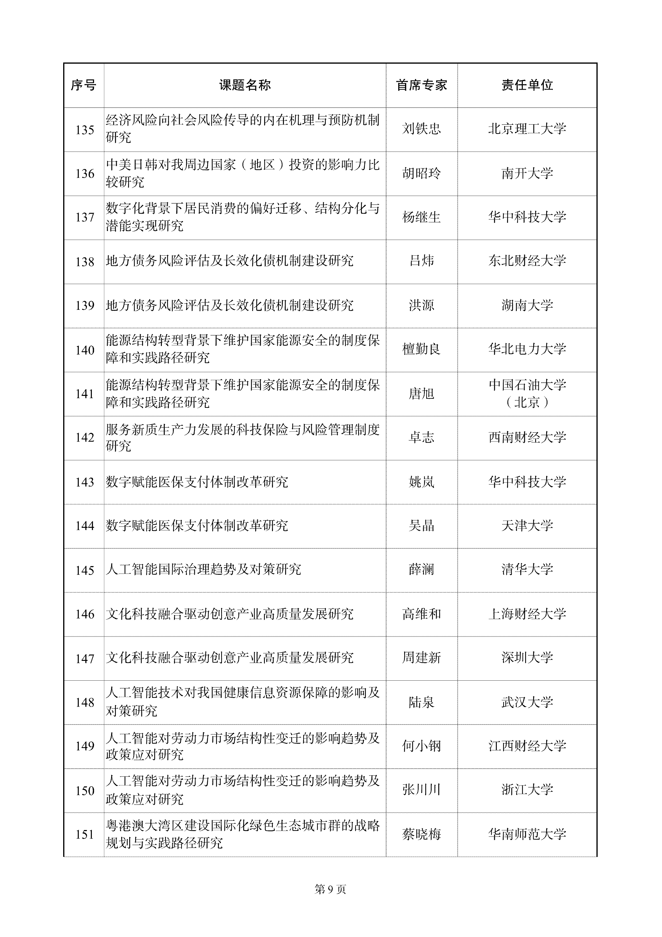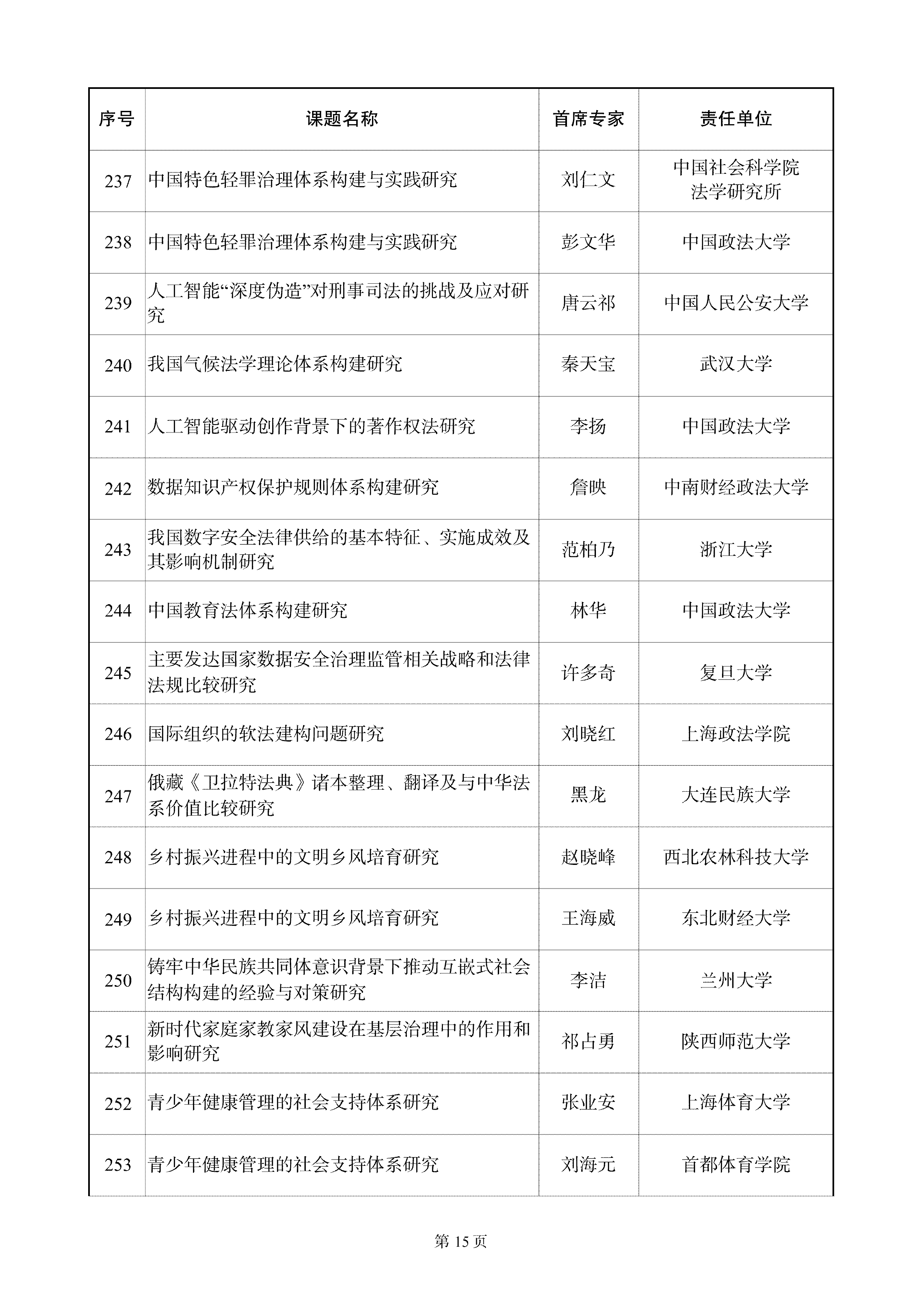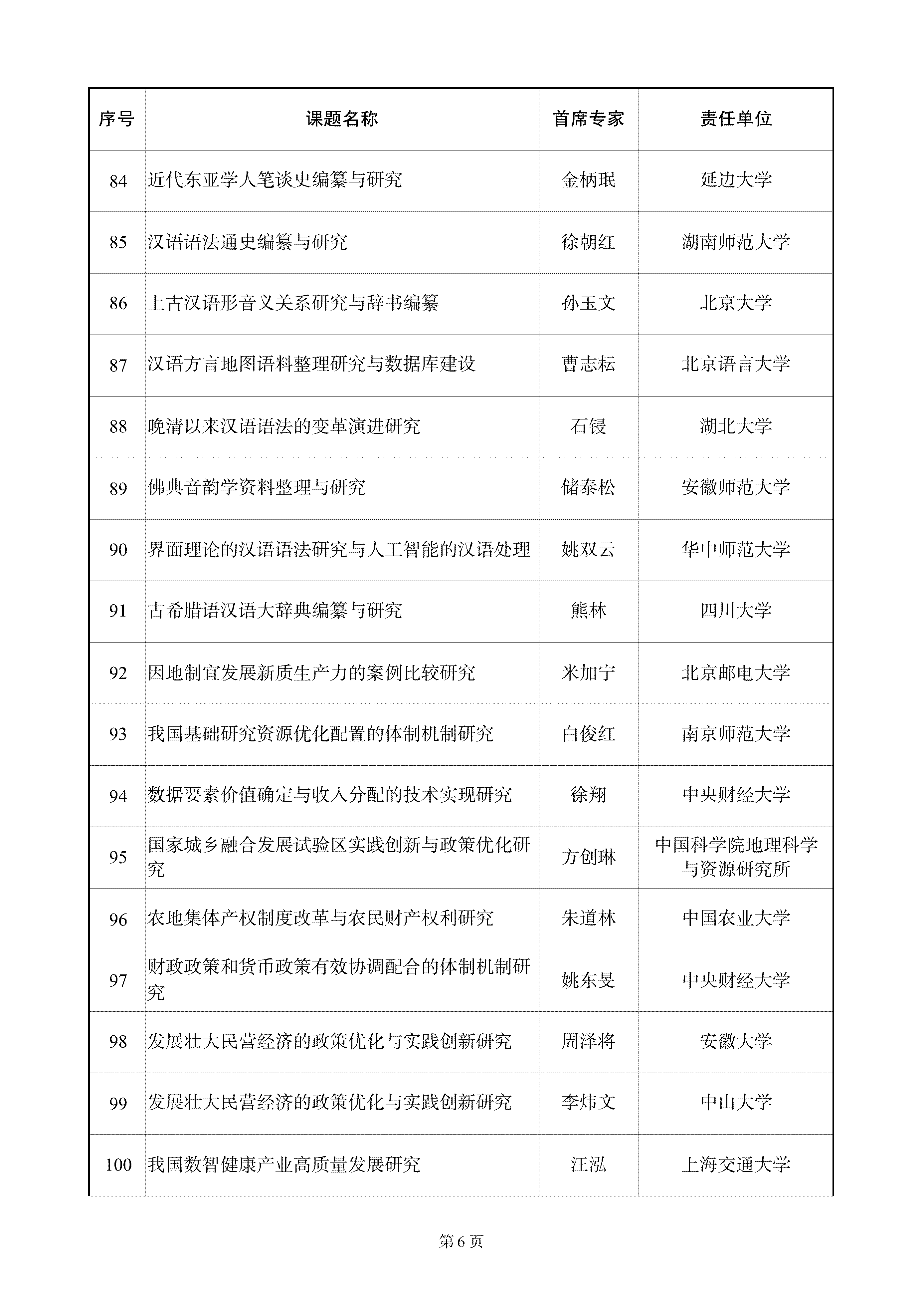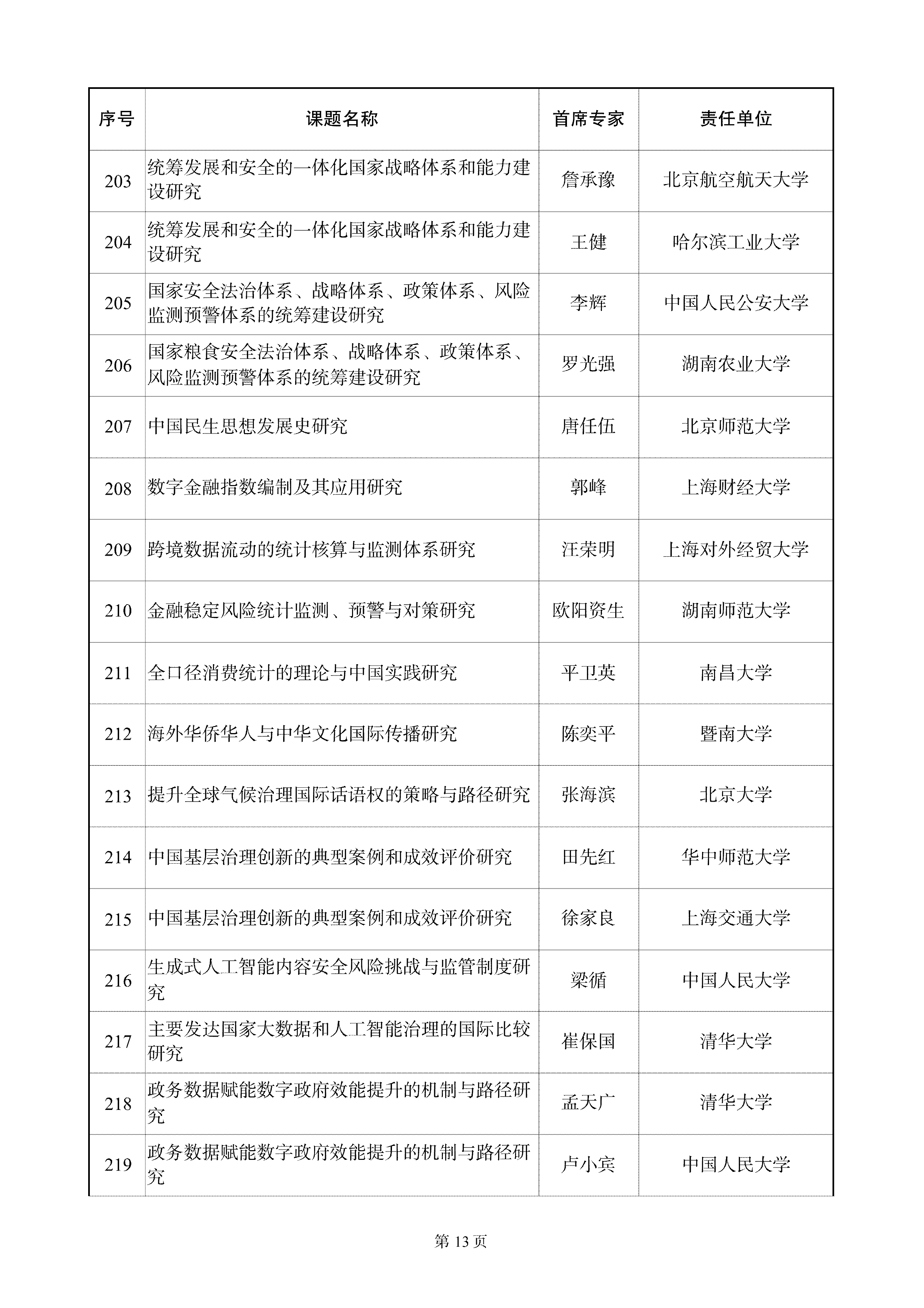 根据《国家社会科学基金管理办法》的有关规定,现将2025年国家社科基金重大项目立项名单予以公示。公示时间为2025年12月6日至12日。公示期内,如有异议,请以书面方式向我办项目管理处反映,并提供必要的证据材料,以便核实查证。提出异议者须提供本人真实姓名、工作单位、联系电话等有效联系方式(我办将予以严格保密),凡匿名、冒名或超出期限的异议不予受理。