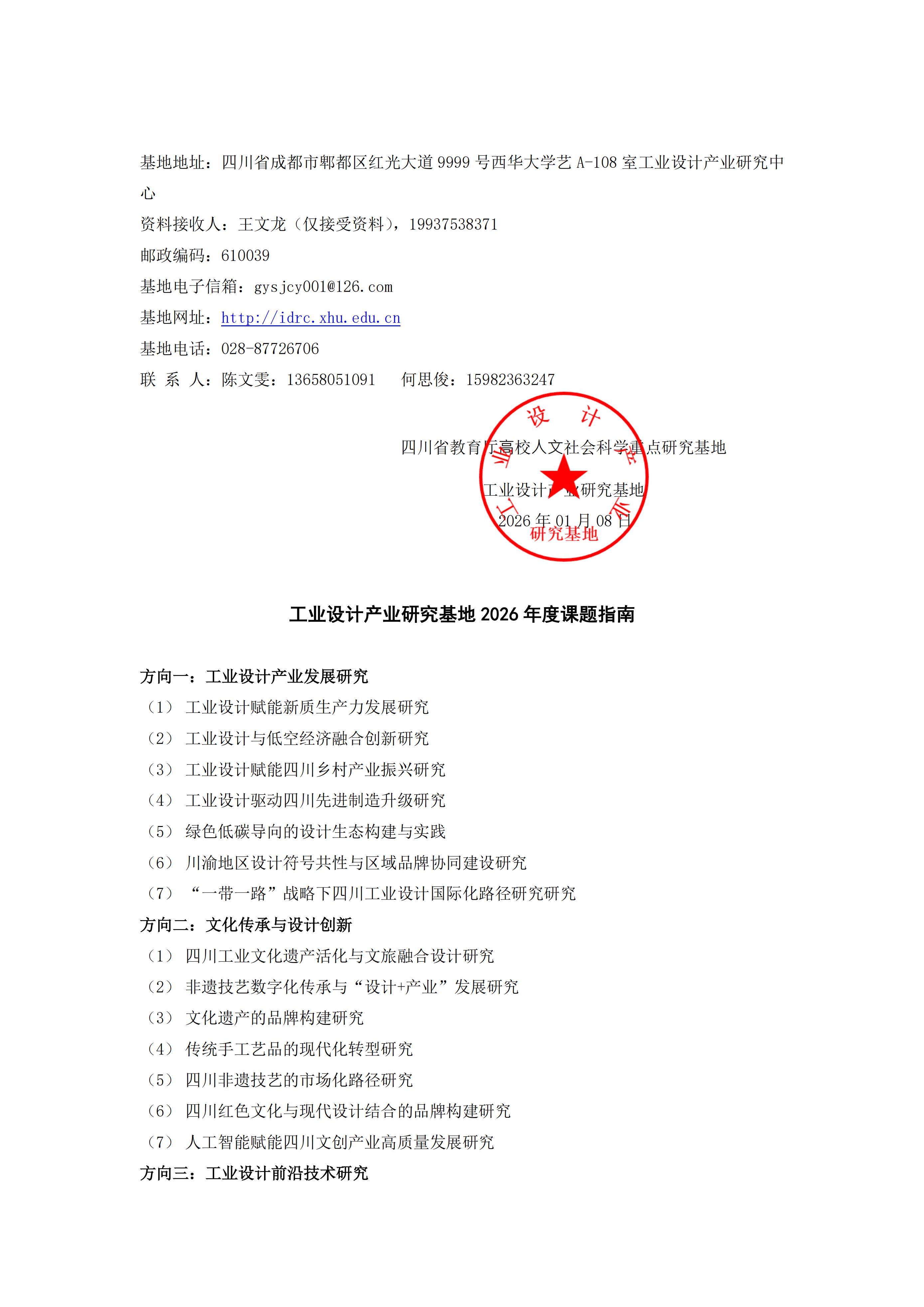 工业设计产业研究基地2026年度课题申报情况汇总表.xlsx