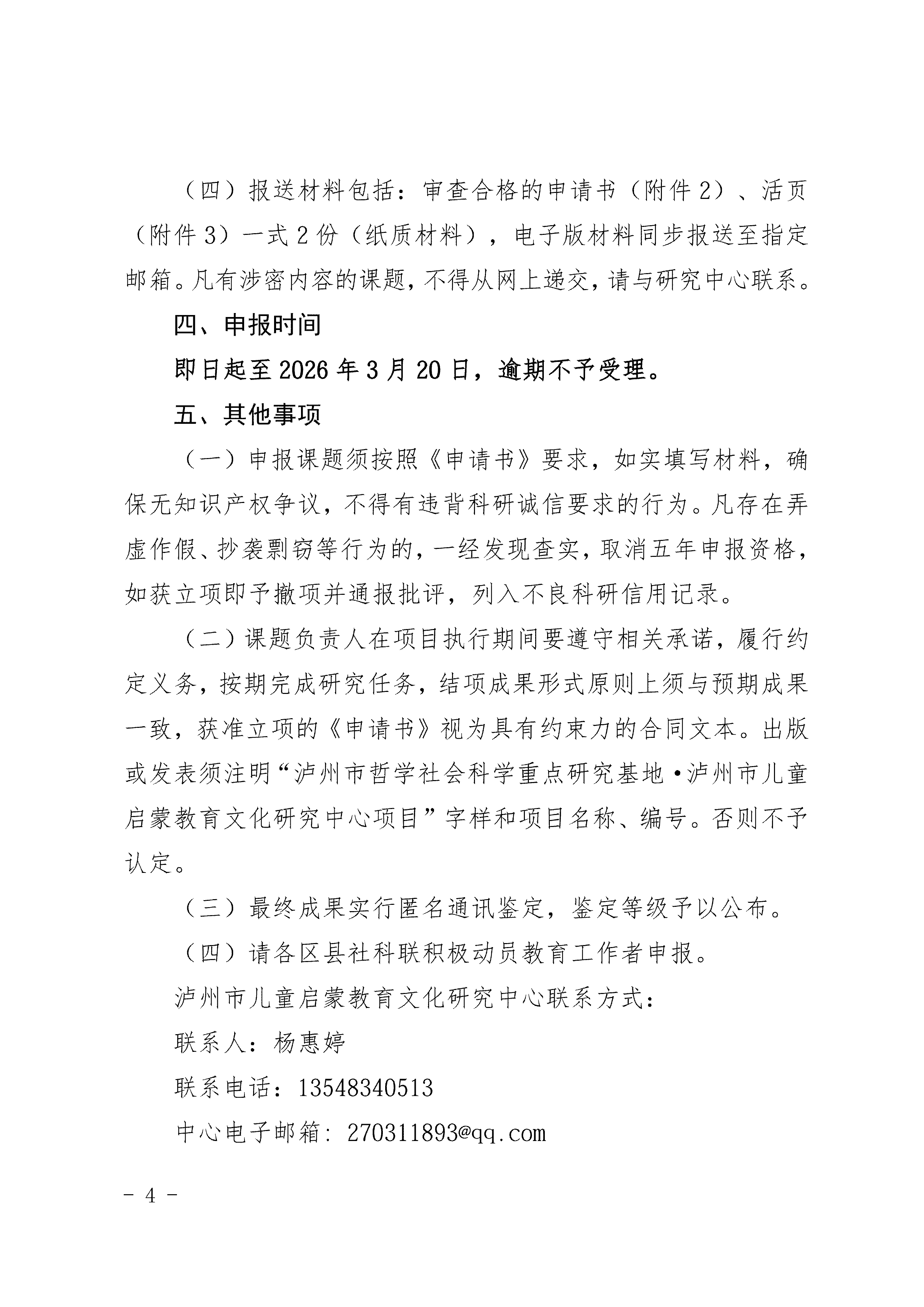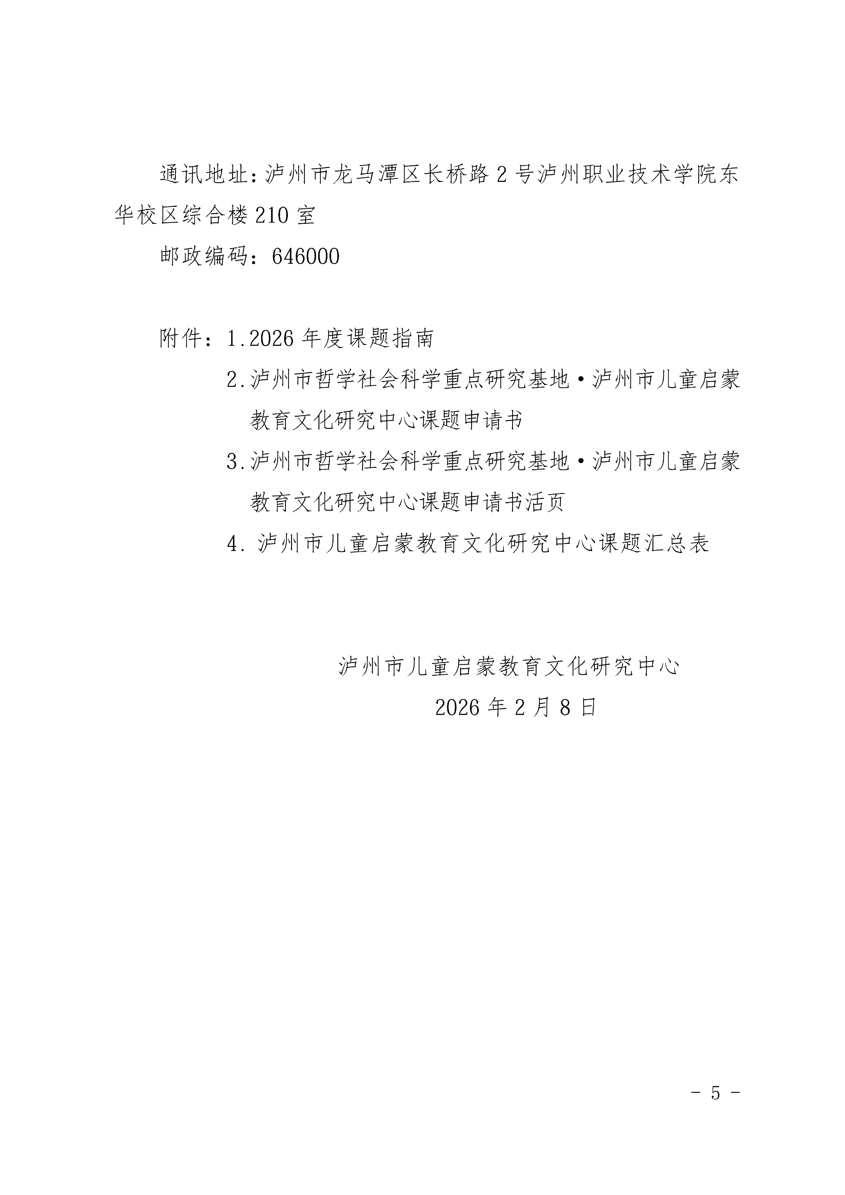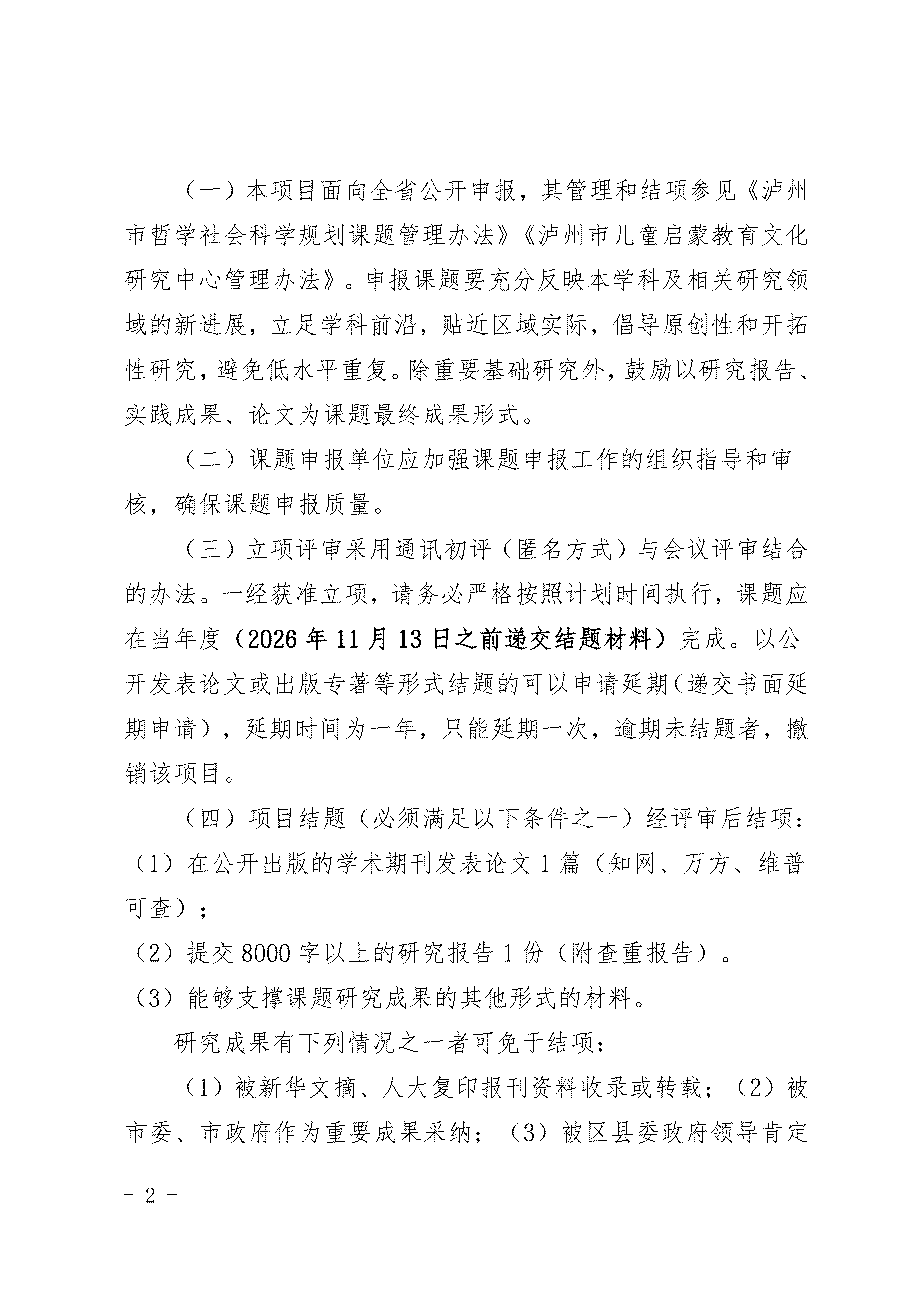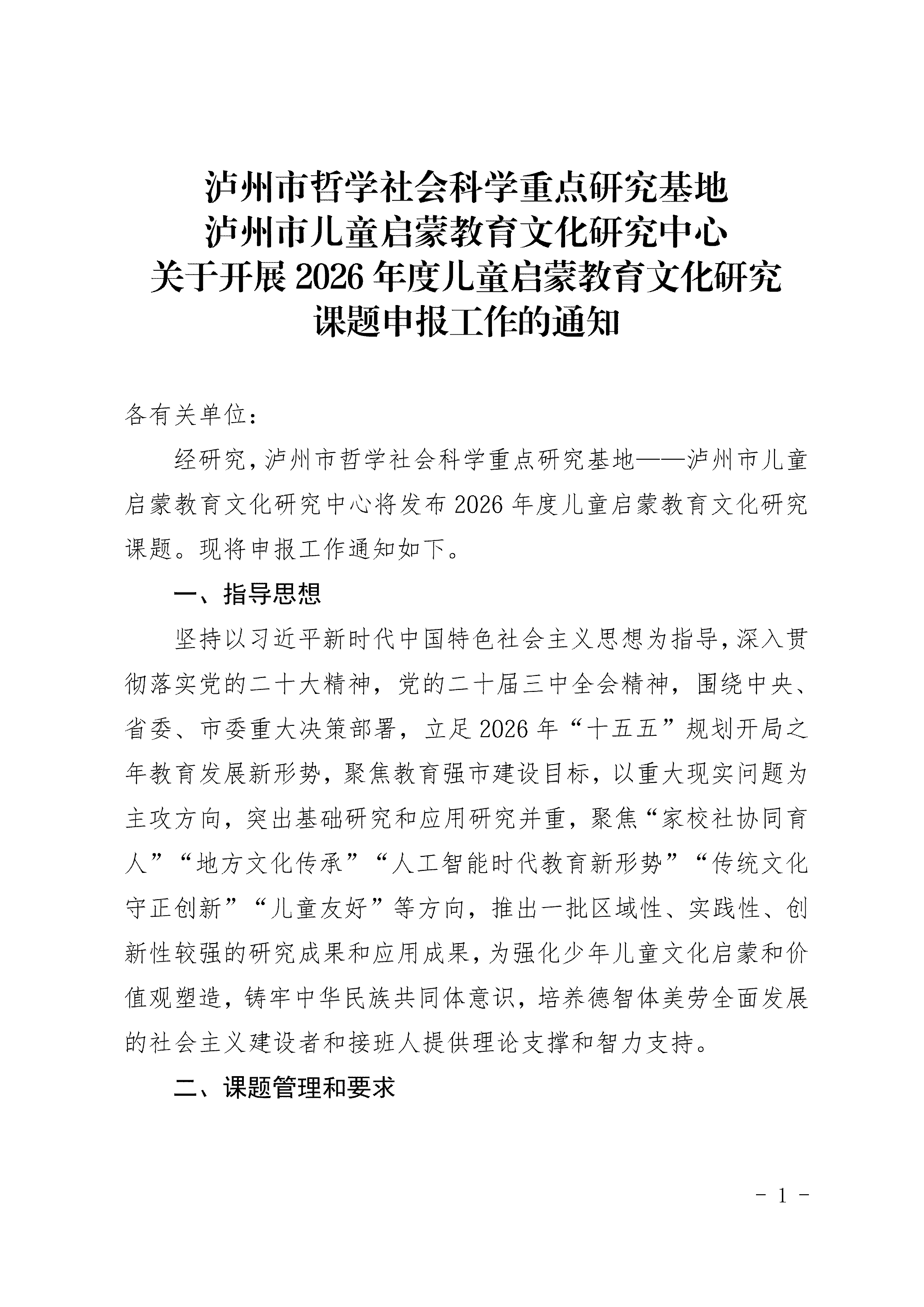 泸州市哲学社会科学重点研究基地泸州市儿童启蒙教育文化研究中心关于开展2026年度儿童启蒙教育文化研究课题申报工作的通知