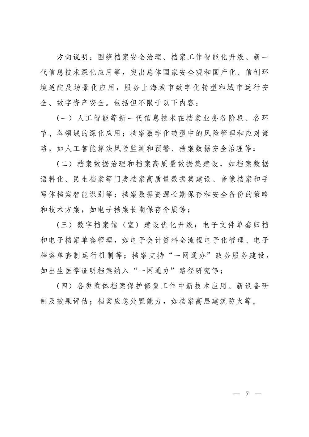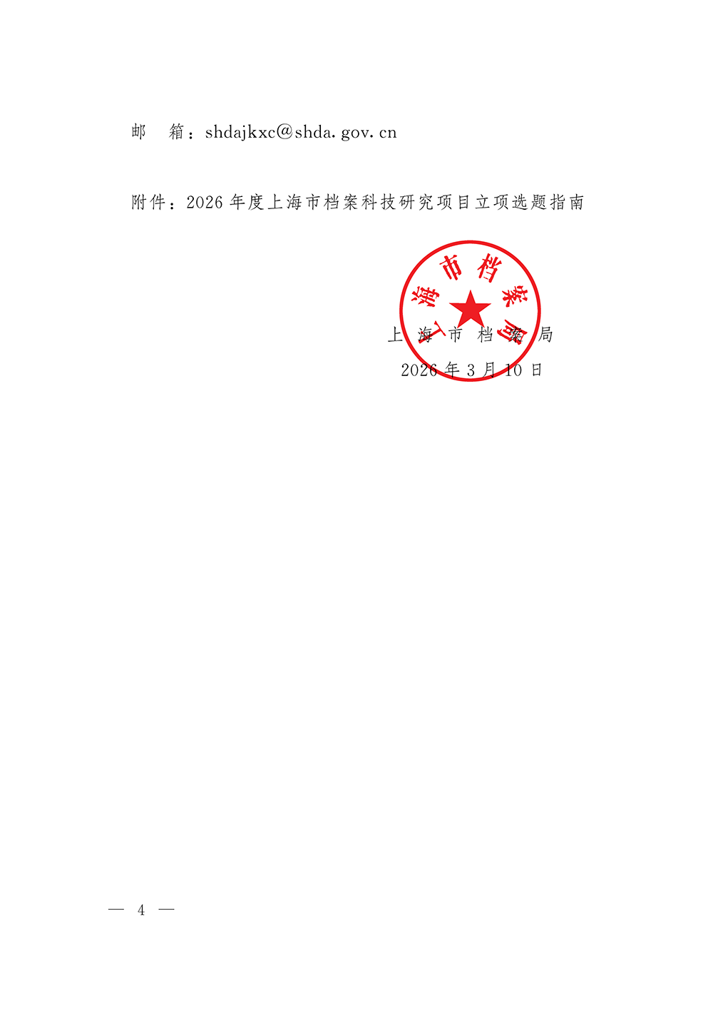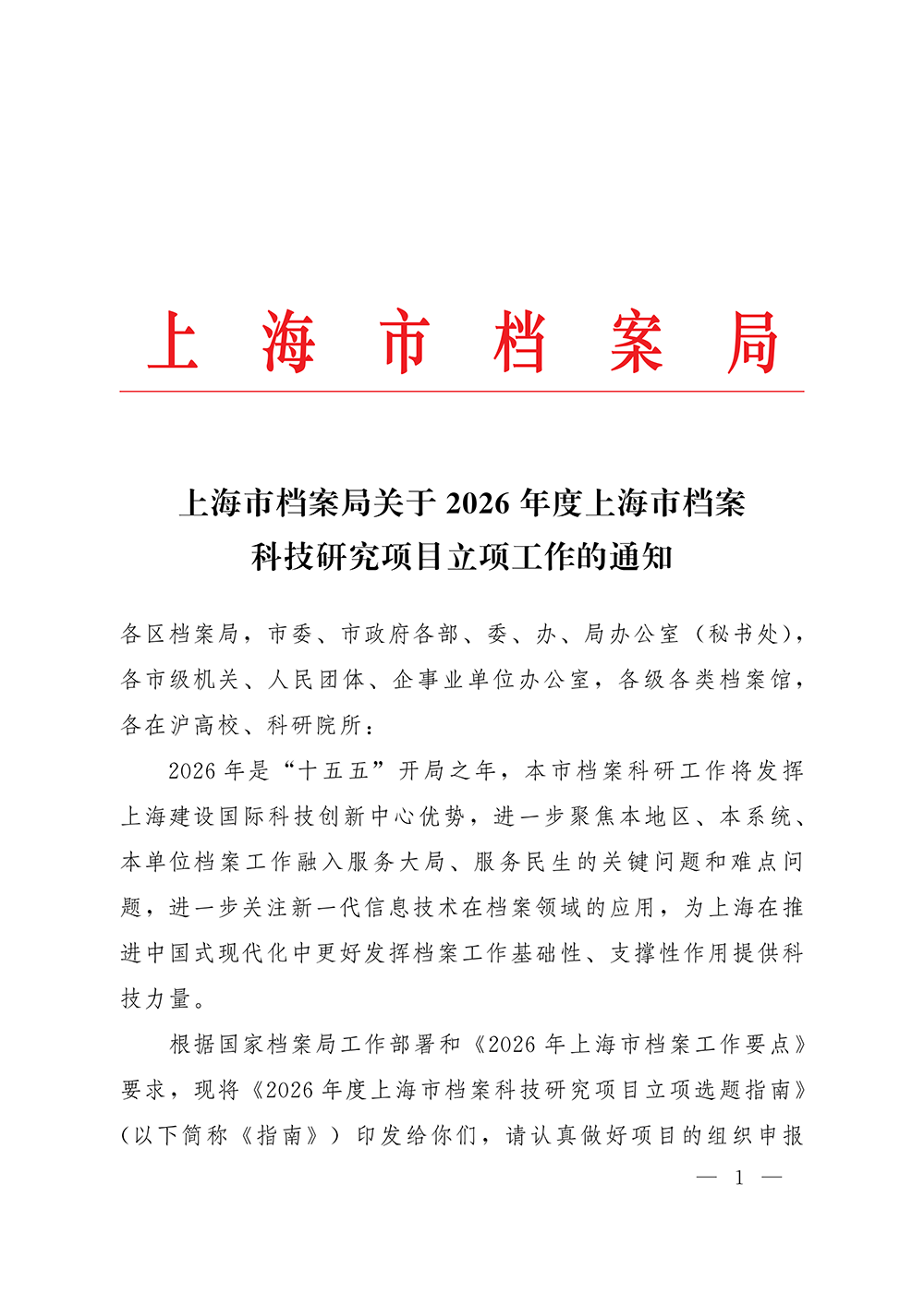 上海市档案局关于2026年度上海市档案科技研究项目立项工作的通知