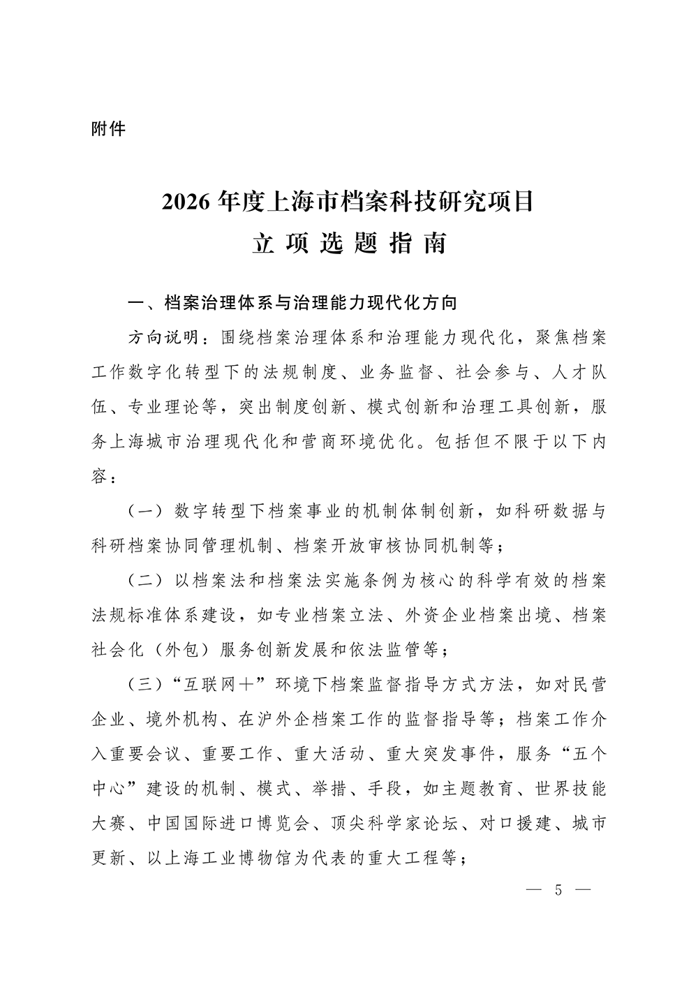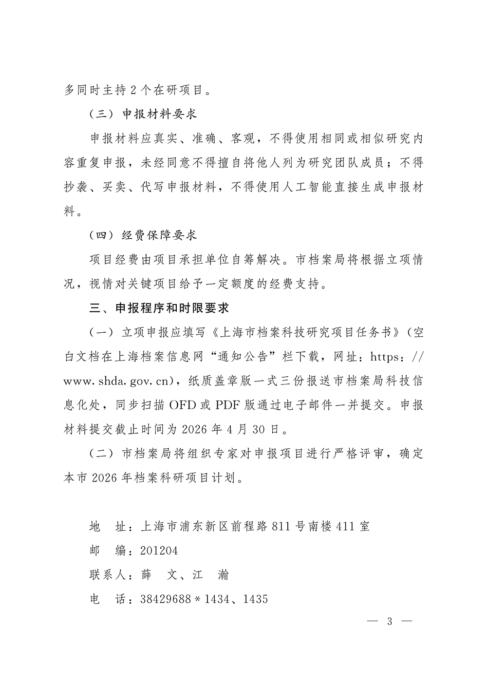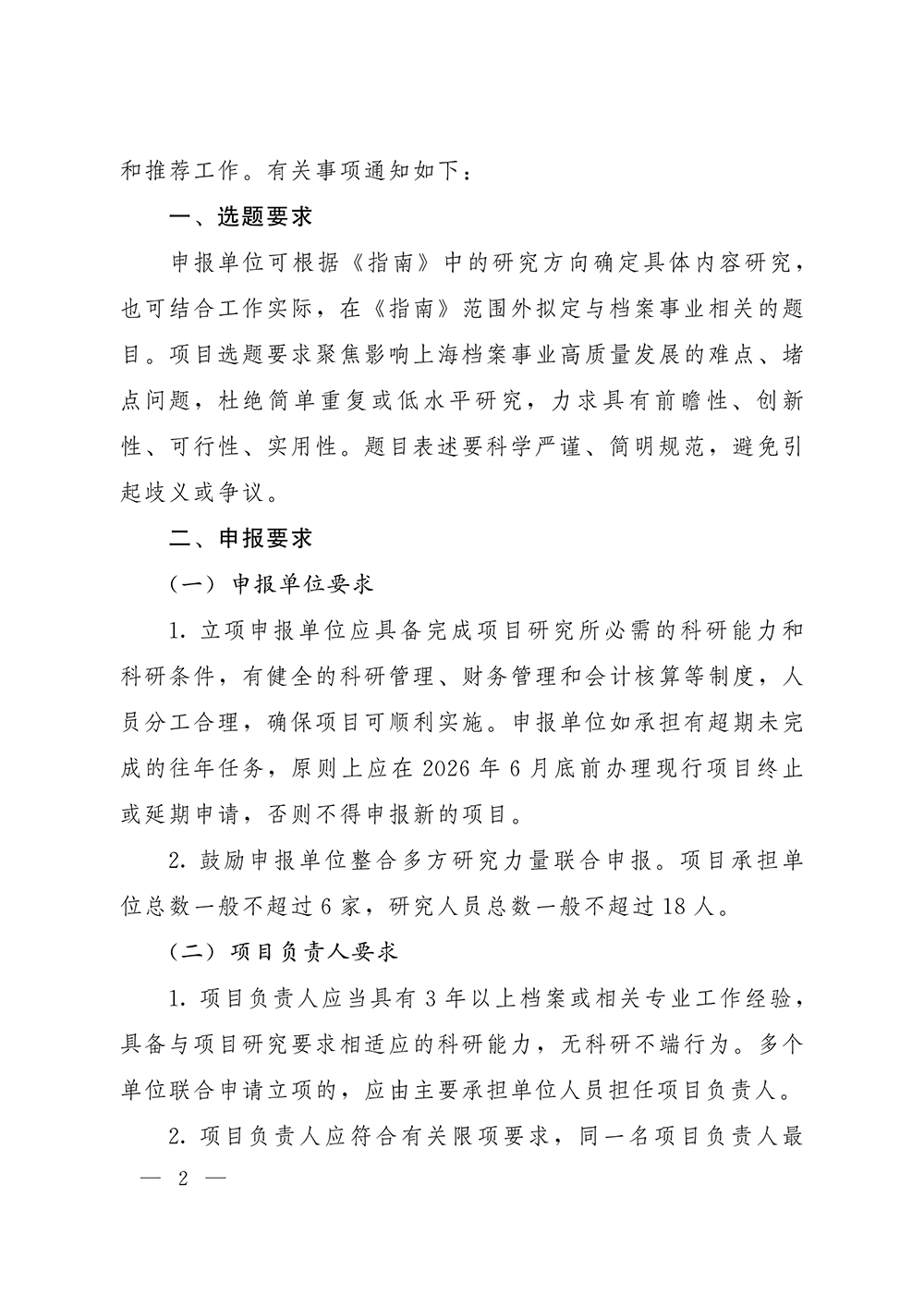 上海市档案局关于2026年度上海市档案科技研究项目立项工作的通知