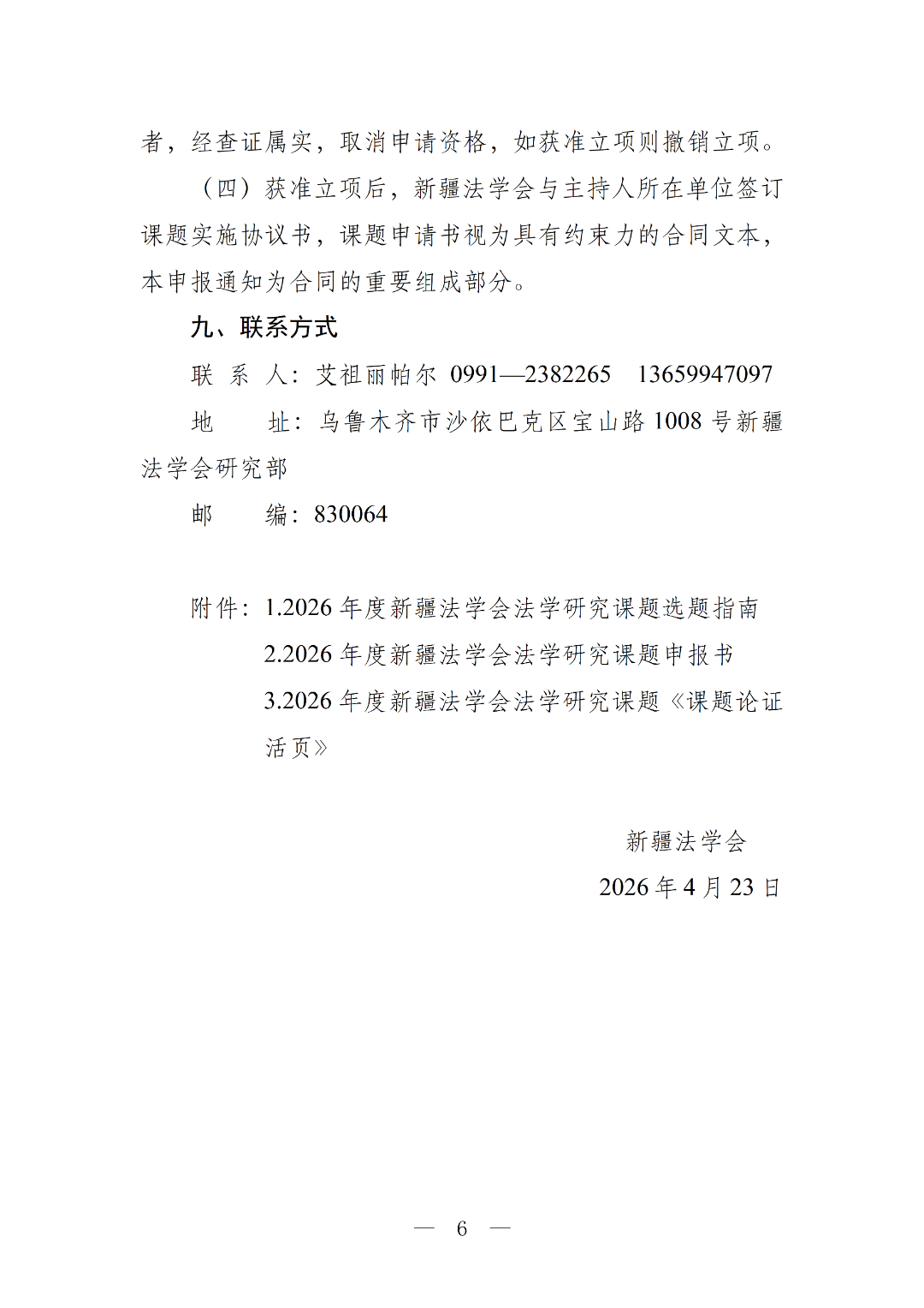 2026年度新疆法学会法学研究课题申报公告